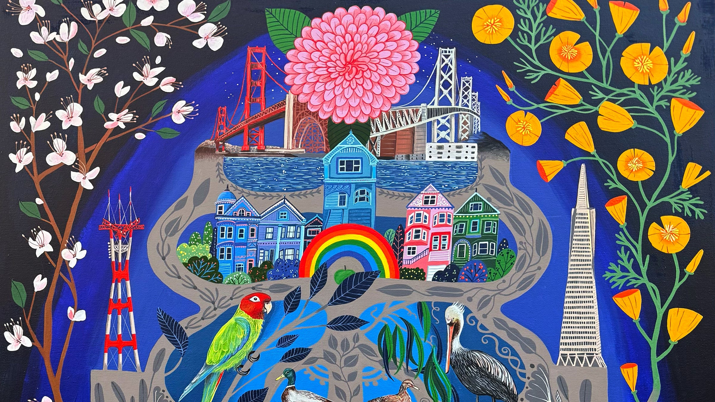 A natural daydreamer and doodler, Annie’s paintings and collages feature bold colors, Californian scenery and a big brushstroke of whimsy.